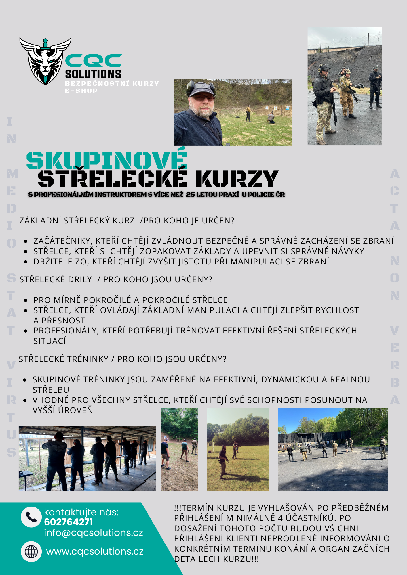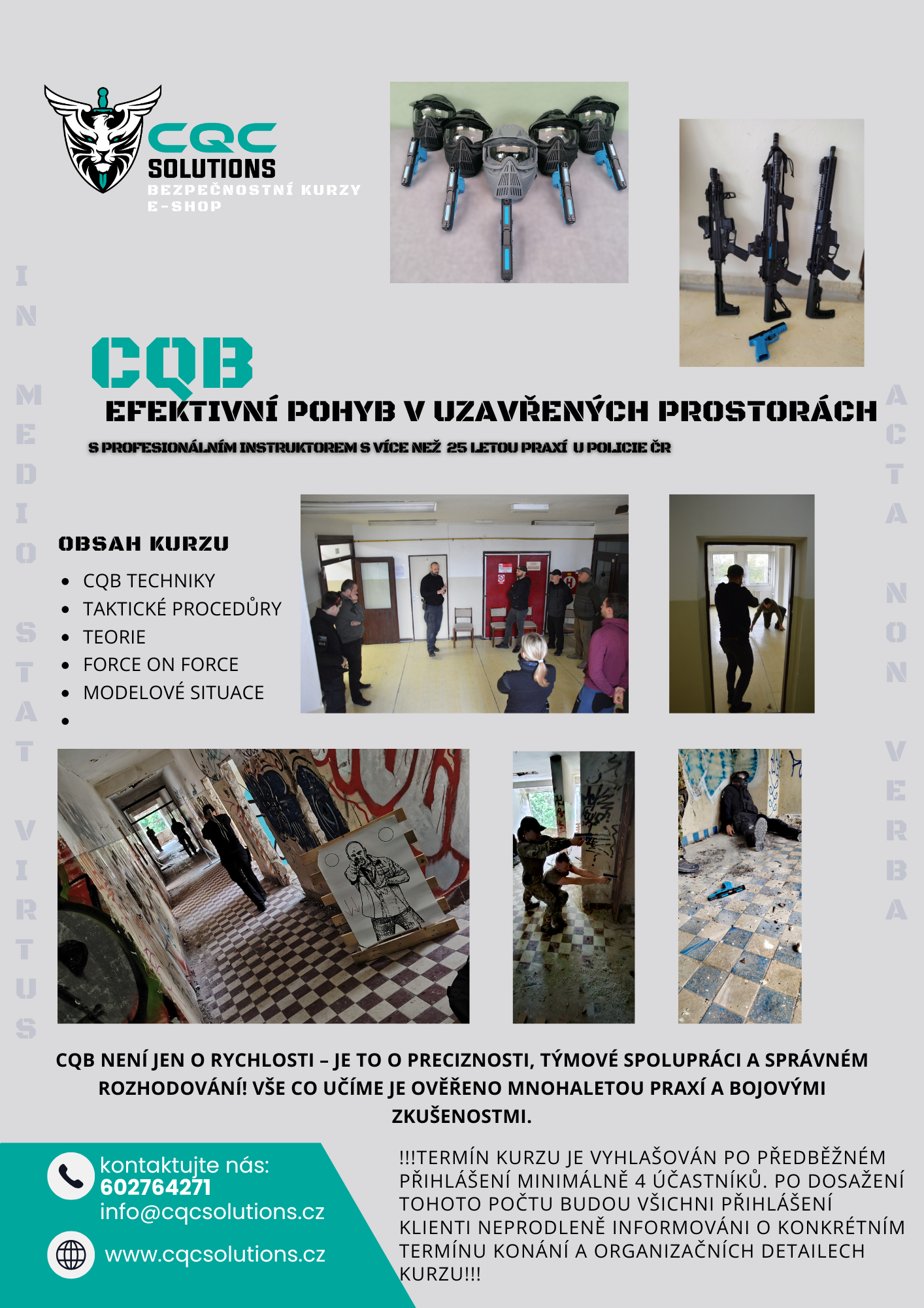 - Název CQC SOLUTIONS symbolizuje nejen naši specializaci na blízký boj (Close Quarters Combat), ale především nabízíme řešení pro vaše bezpečnostní vzdělávání