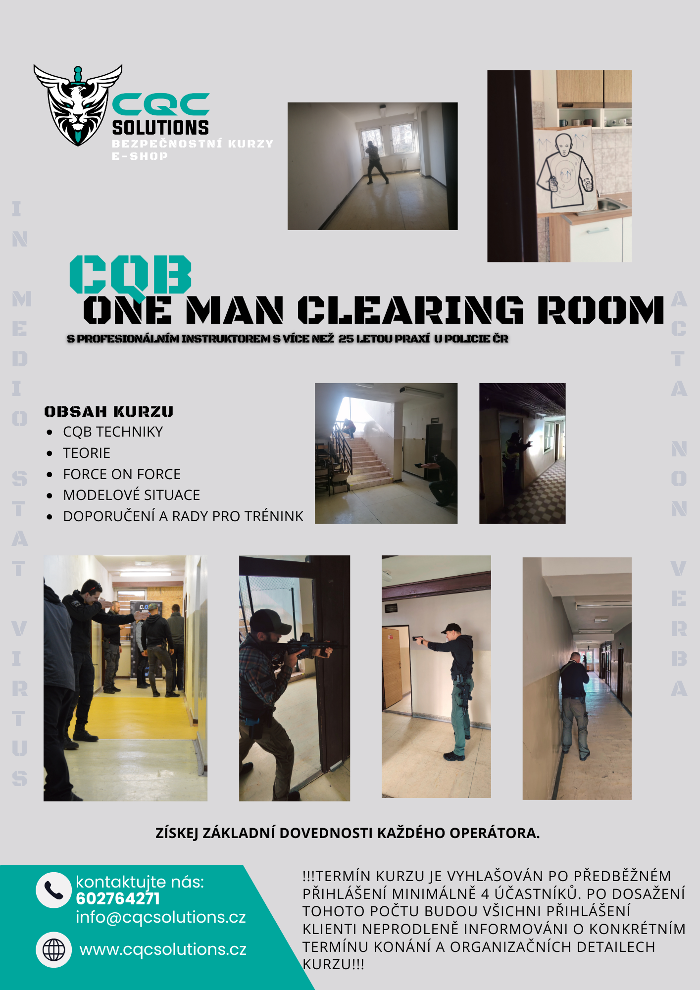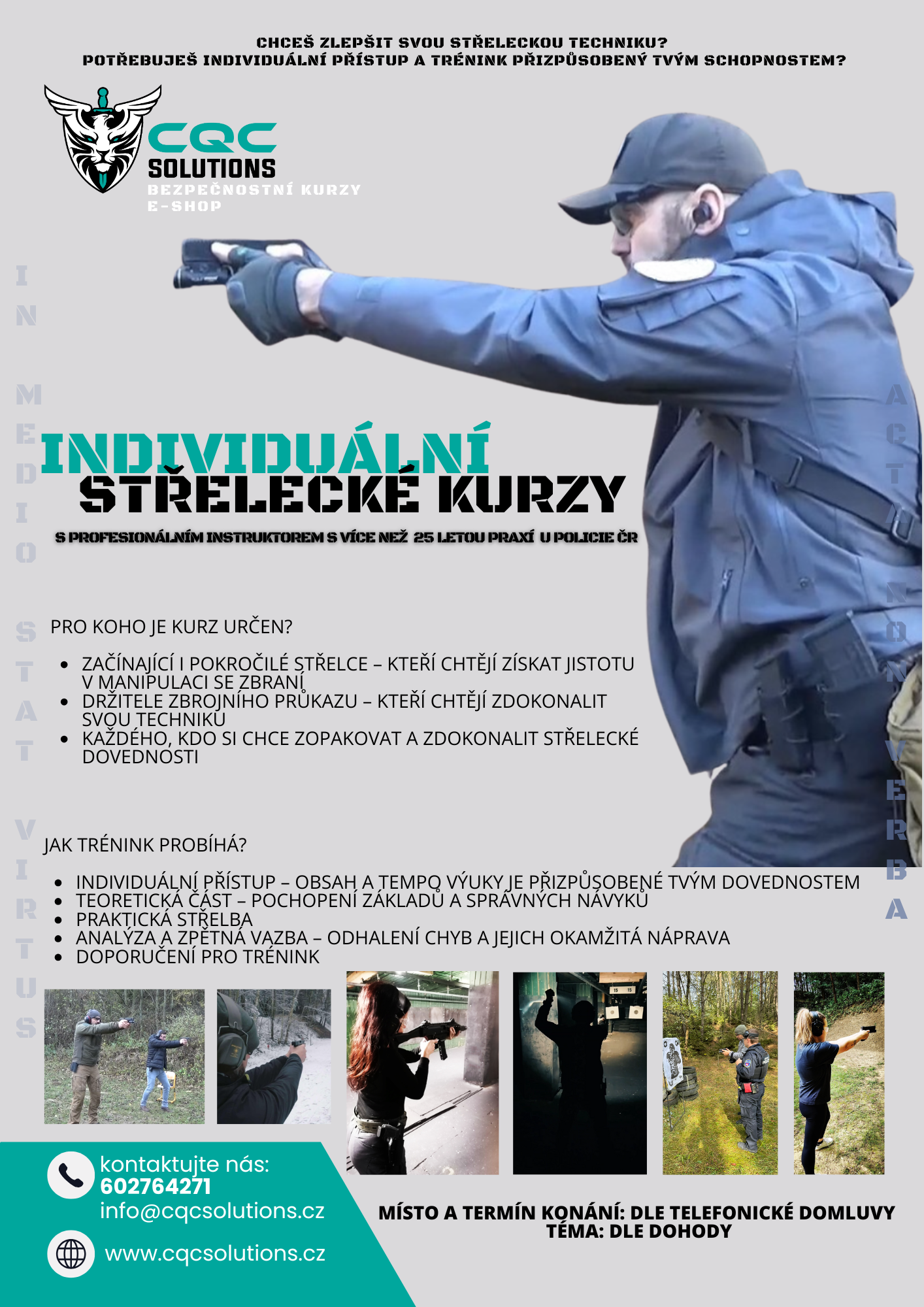 Výcvikový program CQC vznikl v roce 2023 po více než dvou letech plánování zakladatelem Radkem Viktorinem. Stavíme na více než dvaceti pětileté každodenní praxi v oblasti policejního výcviku, taktiky a bojových umění. Naším cílem je nabídnout komplexní systém bezpečnostního vzdělávání, který umožní každému naučit se efektivně bránit – rychle, profesionálně a prakticky.
